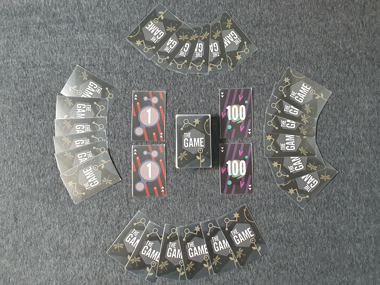 더게임은 플레이어 모두가 함께 협력하여 손에 있는 카드를 모두 털어내는 게임입니다. 규칙은 단 하나! 1부터 100까지 오름차순으로 놓거나, 100부터 1까지 내림차순으로 놓거나 입니다. 이 규칙만 지키면서 손에 있는 카드를 모두 털어내면 게임에서 승리하게 됩니다.