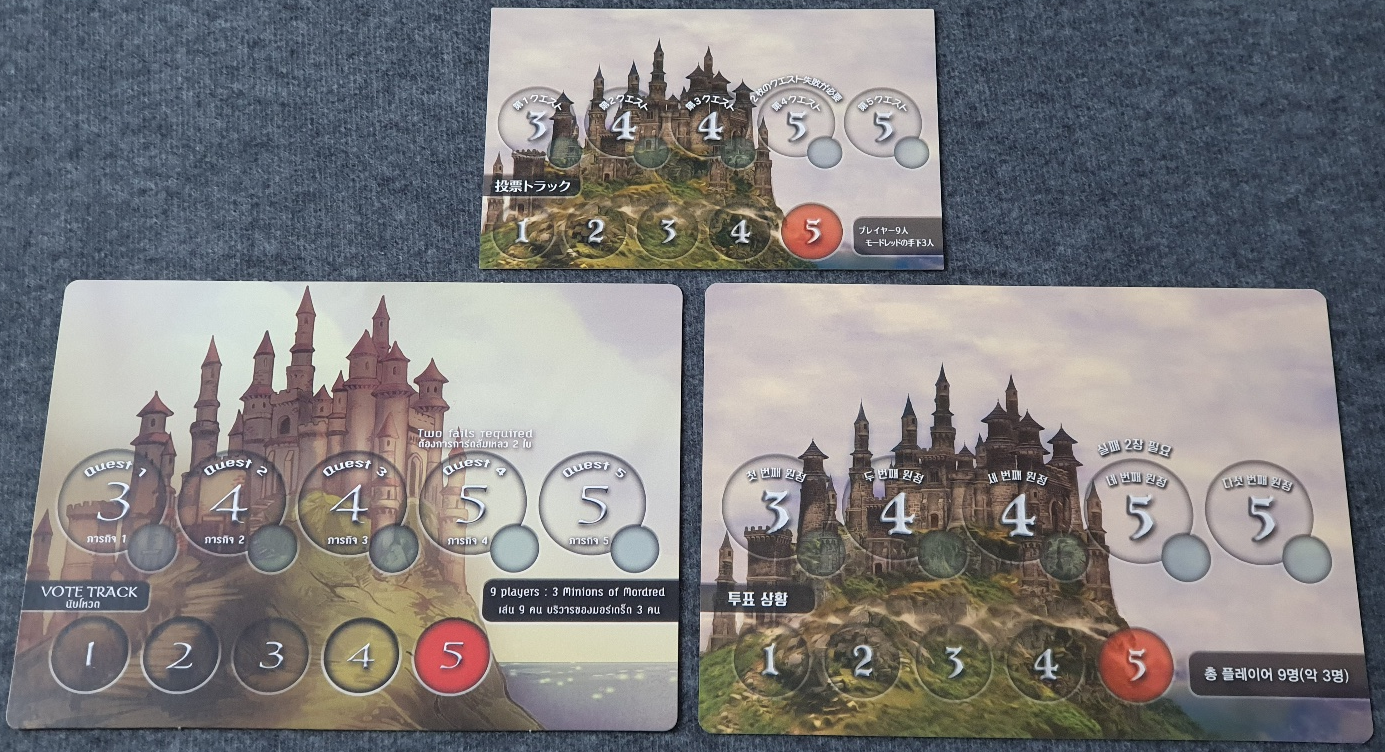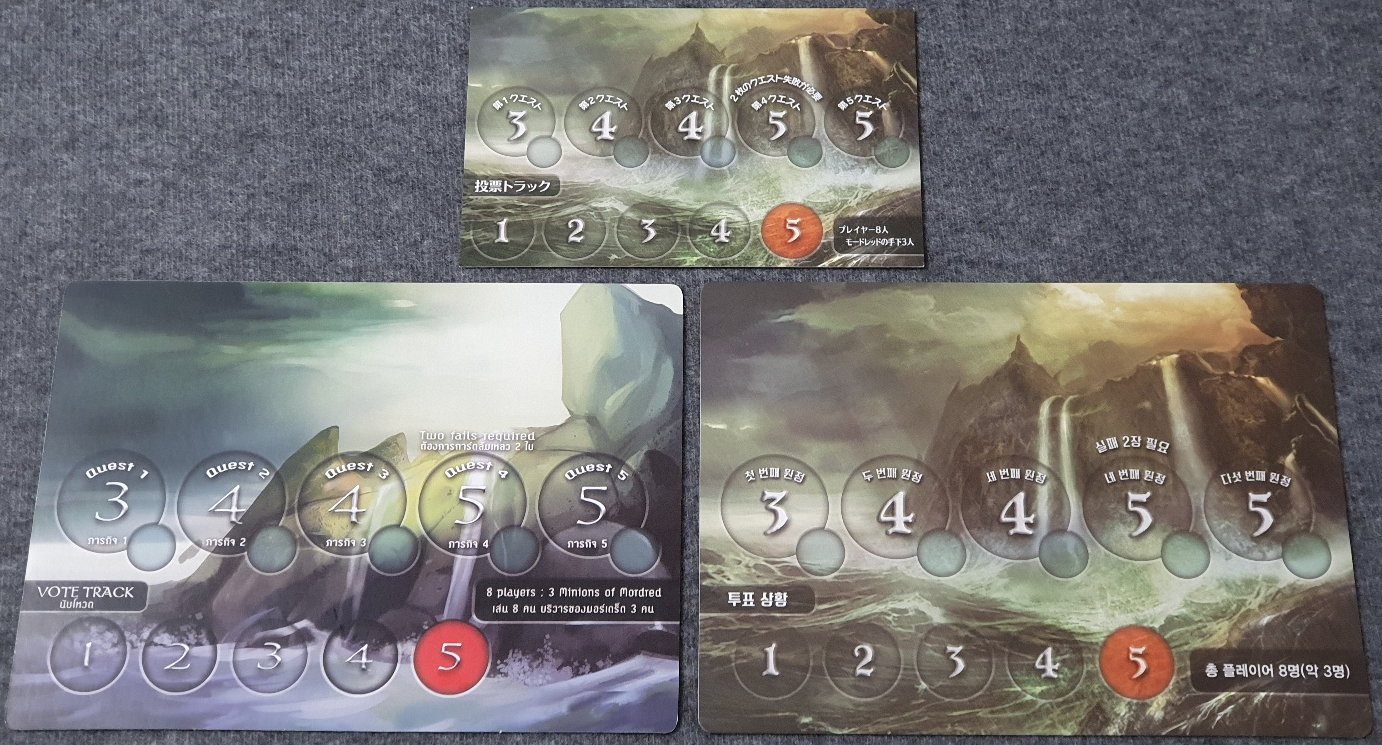 보드게임 아발론 국내판/일본판/태국판 구성 비교