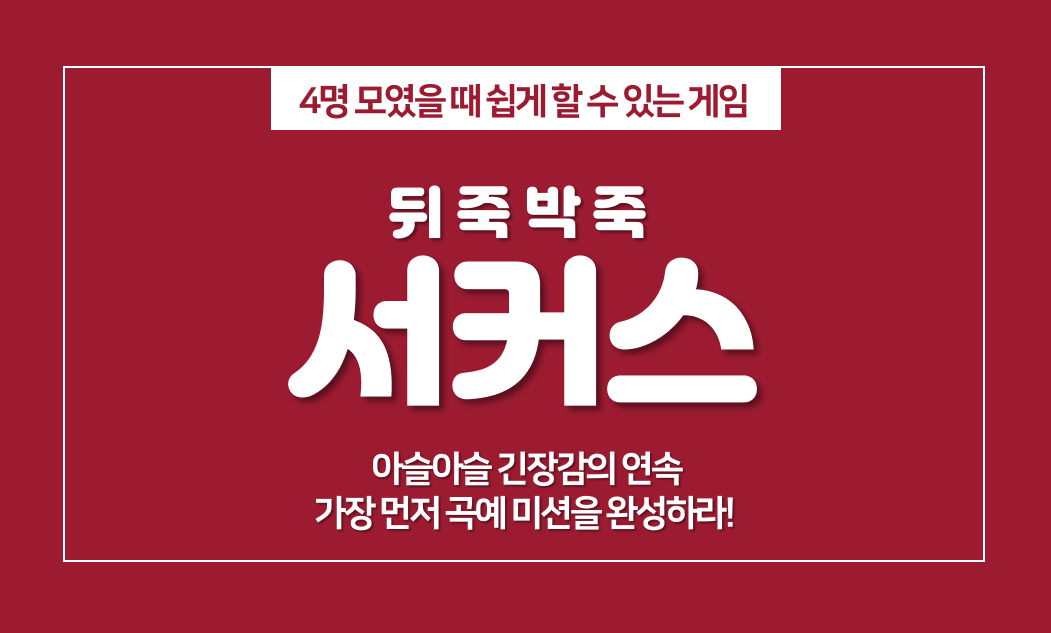 아이들과 집에서 쉽게 할 수 있는 게임을 찾거나, 보드게임 초보자분들을 위한 게임을 찾으시는 분들께 뒤죽박죽 서커스를 추천 드립니다. 할리갈리 정도의 난이도로 누구나 쉽게 즐길 수 있는 보드게임 입니다. 최소 2명에서 최대 4명까지 즐길 수 있습니다.