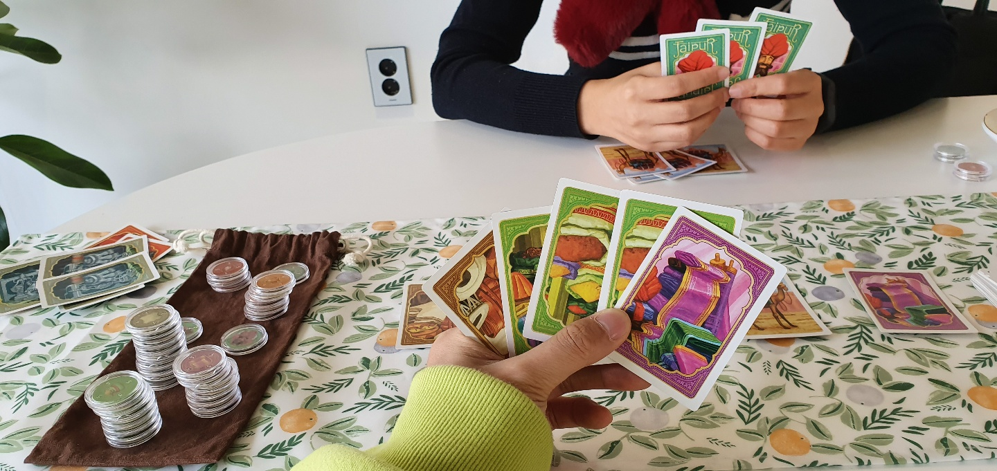 인도의 무역 중심지 자이푸르에서 최고의 상인을 겨루는 2인 게임입니다 게임의 진행 방식은 아주 간단한데요. 같은 종류의 카드를 최대한 많이 모아서 최대한 큰 점수를 많이 먹는다! 이것만 기억해주시면 됩니다. 그럼 자세한 룰 설명 들어가도록 할께요