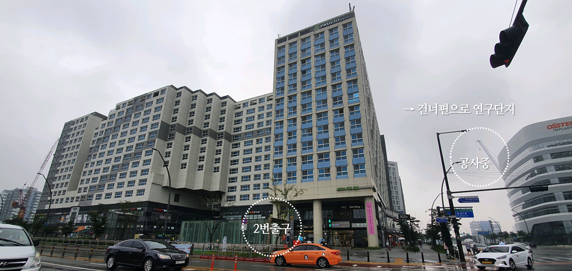 그래서 보통 회사들을 상대로 영업하는 먹자 상권은 보통 안쪽에 위치하는 경우가 많은데 대로변에 나와있는 것을 확인할 수 있었습니다. 이쪽의 시세는 보증금 5,000 내외로 10~13평 정도가 350~450만원 사이로 형성되어 있습니다. 아직 공실들이 있기 때문에 권리금은 크게 없다고 합니다. 건너편은 아직 공사중이고 업체들이 아직 많이 안들어와 있어서 상권형성이 조금 더디게 되고 있습니다.