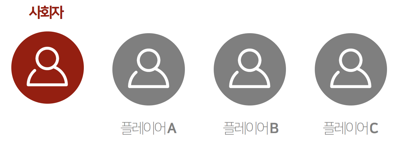 1명의 사회자와 3명의 플레이어로 게임이 진행됩니다.