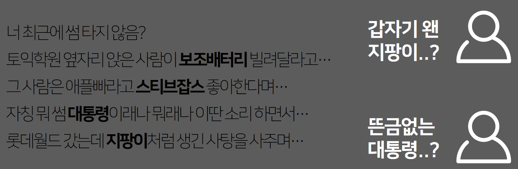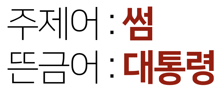 설명의 이해를 돕기 위해 주제어를 썸 / 뜬금어는 대통령이라고 정해보겠습니다.