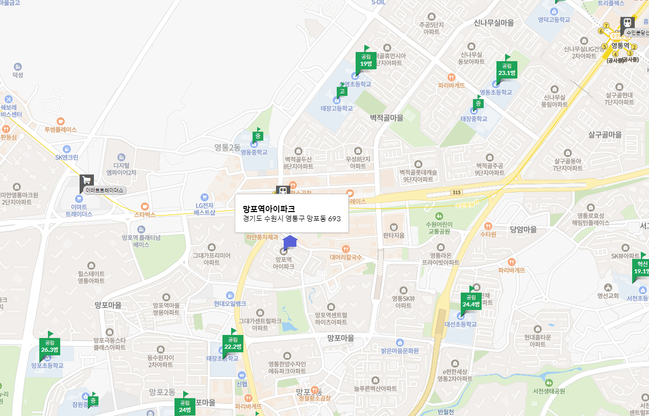 망포역 초역세권에 위치한 이 아파트는 2002년 준공된 554세대의 대단지로, 주변 상권이 골고루 발달해 있습니다. 망포와 영통 지역은 삼성전자 등 대기업이 위치해 있어 고소득자들이 많이 거주하는 지역입니다. 따라서 자녀를 키우기에 좋은 환경이 마련되어 있습니다.