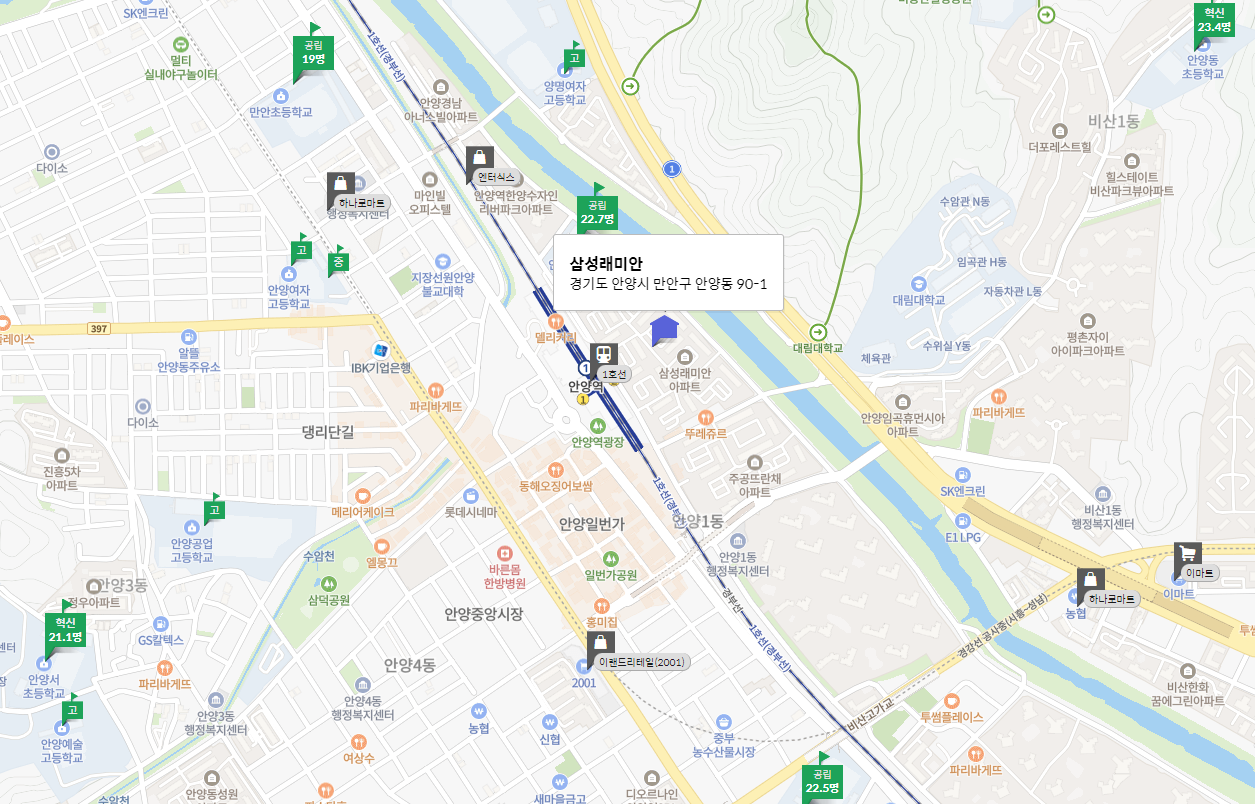 안양역 초역세권에 위치한 삼성 레미안은 2002년 준공되었으며, 구축의 느낌이 크지 않습니다. 안양역 푸르지오 더샵 대단지 신축 아파트 완공되어 생활권 개선 혜택을 누리며 월곳-판교선: 안양에서 판교까지의 교통 편의성이 좋아졌습니다.