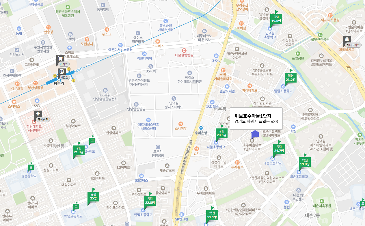 4호선 평촌역을 이용하면 서울역, 용산, 사당, 충무로 등 주요 지역으로 빠르게 이동할 수 있어 출퇴근 효율성이 높습니다. 다만, 이 아파트는 구축(오래된 아파트)이기 때문에 재건축이나 리모델링까지 시간이 걸릴 수 있다는 점을 참고하세요.