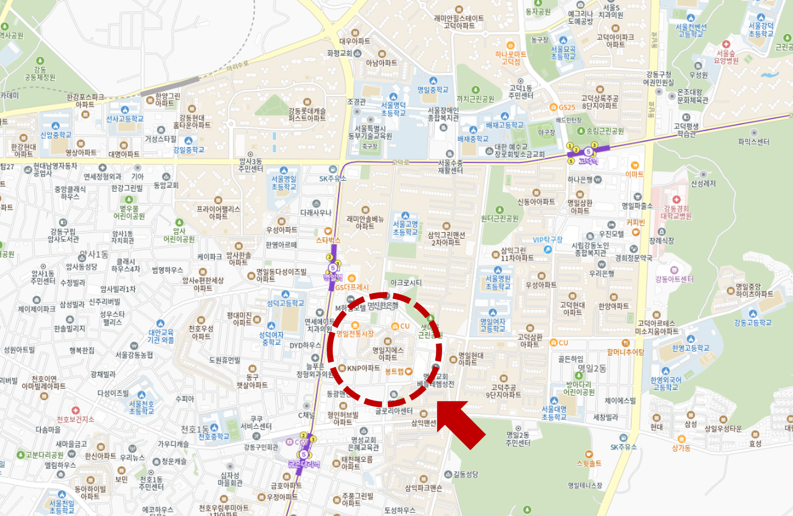 강동구 명일동에 위치한 명일 GS는 24평형의 아파트로, 1999년식이며 772세대 규모입니다. 5호선 명일역에서 도보 약 5분 거리에 위치해 있습니다. 과거 최고 9억 2천만 원에 거래되었으나, 최근 7억 3천만 원에 거래되어 시세가 약 1억 9천만 원 하락했습니다. 현재 매물 가격은 7억 1천만 원부터 시작하며, 전세 매물은 4억 5천만 원부터 시작합니다. 24평형 매수 시 필요한 현금은 약 2억 6천만 원입니다.