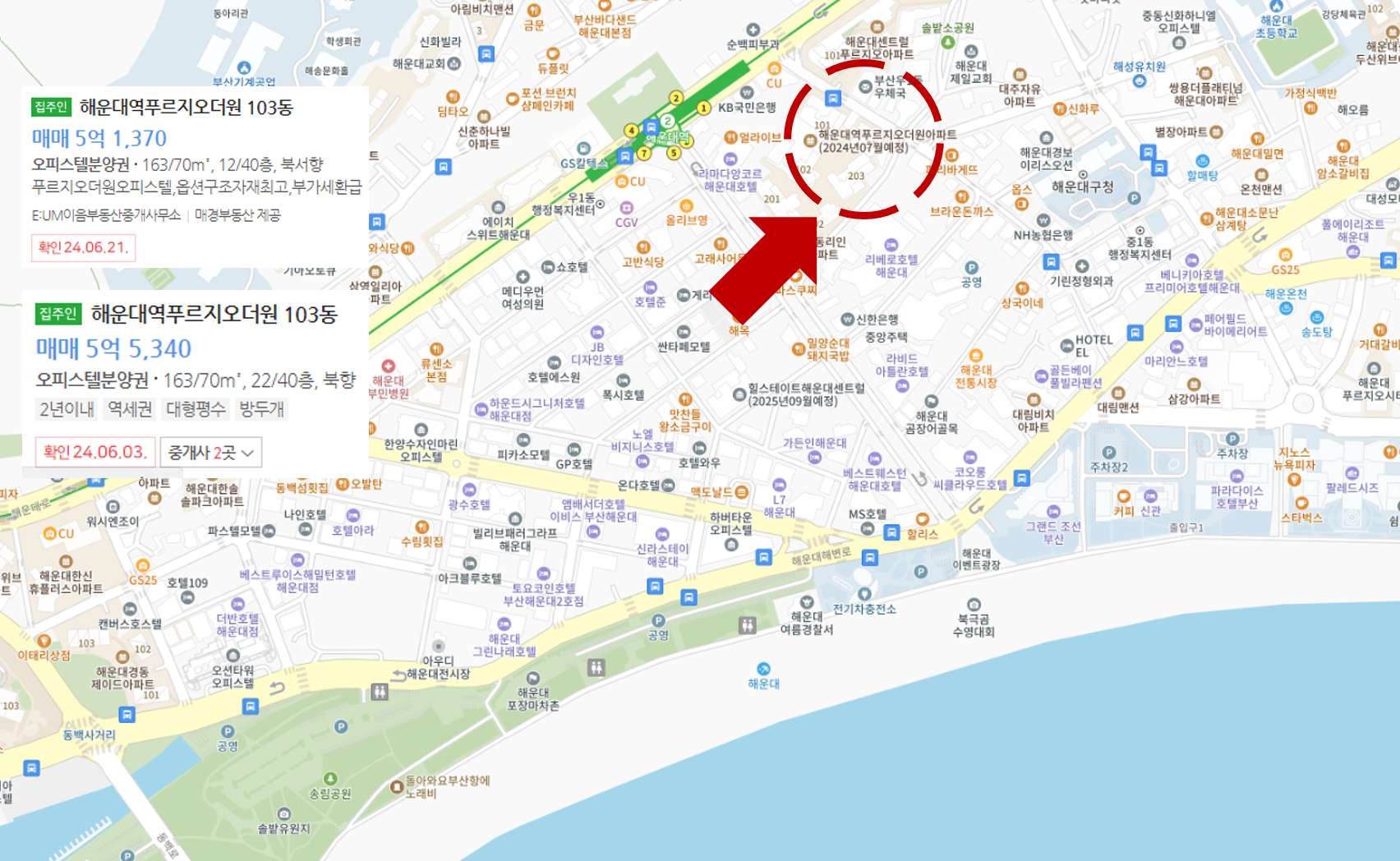 해운대구 우동에 위치한 해운대역 푸르지오 더원은 현재 마이너스 프리미엄 3천만 원이 적용된 7억 2,200만 원에 매물이 나와 있습니다. 작년부터 매물량이 꾸준히 증가하고 있으며, 입주가 다가오면서 매물량이 더 증가하고 있습니다.