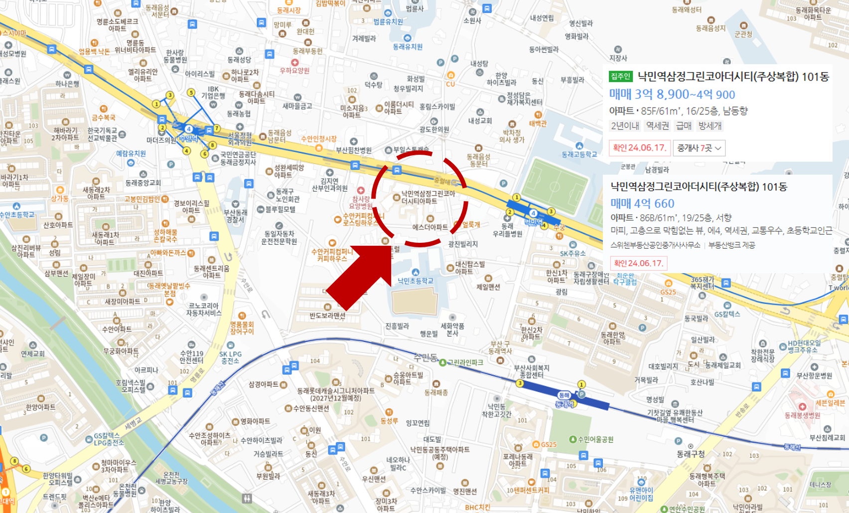 동래구 낙민동에 위치한 낙민역 삼정 그린코아 더 시티는 2024년 3월 입주 예정입니다. 이 아파트는 호선 낙민역과 동해선 동래역이 가까운 역세권 아파트로, 현재 마이너스 프리미엄 4천만 원이 적용된 3억 7230만 원에 매물이 나와 있습니다.