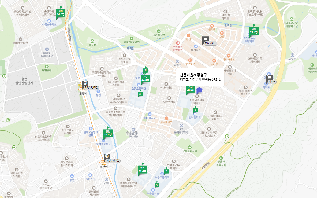 의정부시는 경전철과 7호선 연장으로 교통이 편리해질 예정입니다. 오늘 소개할 아파트는 의정부시 민락동에 위치한 산들마을 서왕 청구 아파트입니다.