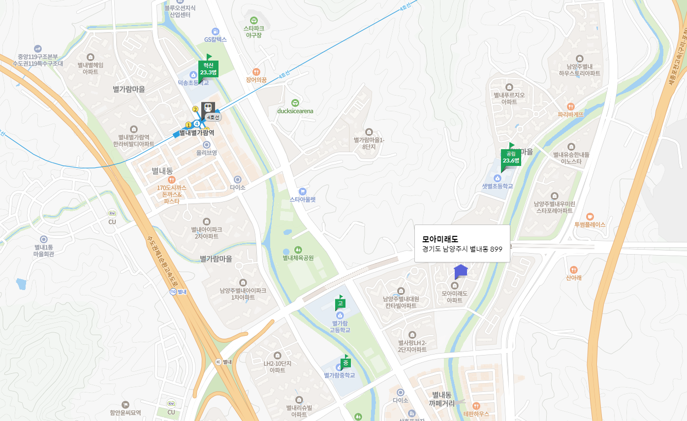 2014년에 준공된 558세대의 대단지로, 방 세 개와 화장실 두 개로 구성되어 있습니다. 경춘선 별내역과 4호선 별내별가람역이 가까워 교통이 편리하며, 다양한 편의시설이 주변에 있습니다. 과거 최고가는 8억 원, 최근 거래가는 6억 1천만 원으로 매물은 5억 9천만 원, 전세는 3억 6천만 원에 나와 있습니다.
