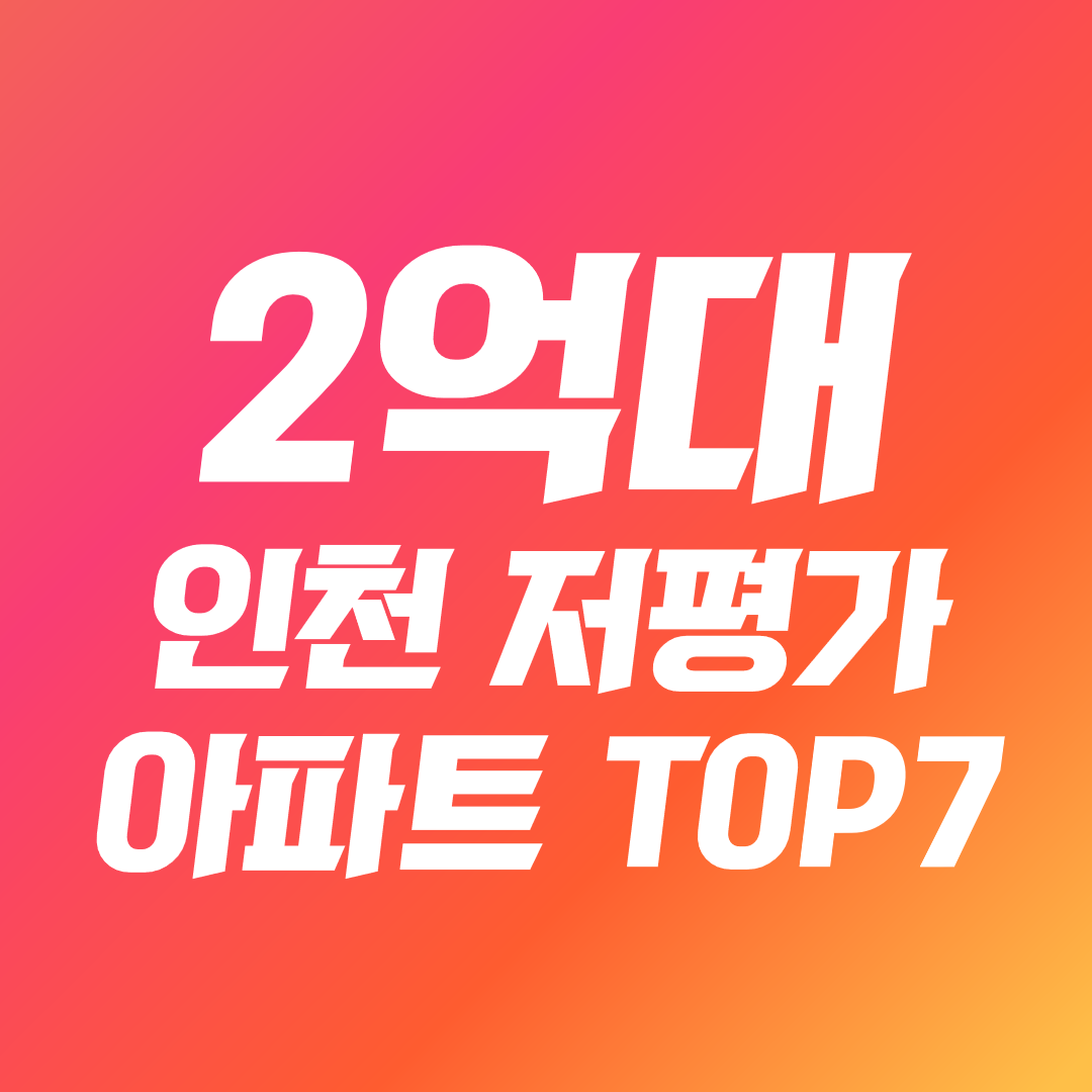 인천 저평가 아파트 7곳을 소개합니다. 2억 원 전후의 예산으로 매수 할 수 있는 인천의 저평가 아파트 7개를 찾아보았습니다. 신축, 역세권 등 선호도가 높은 단지들을 위주로 찾았습니다.