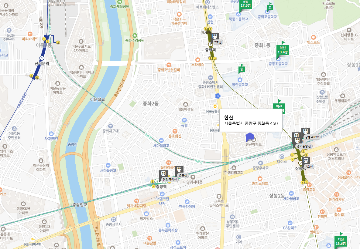 중화 한신은 중랑구 중화동에 위치한 아파트로, 2021년 10월 최고가 8억 3,200만 원에 거래되었으나, 2022년 11월 6억 원으로 28% 하락했습니다. 7호선과 경의중앙선 상봉역 도보 이용이 가능하며, 상봉초가 인근에 위치해 있습니다. 상봉 터미널과 코스트코 등 편의 시설이 가까이 있습니다.