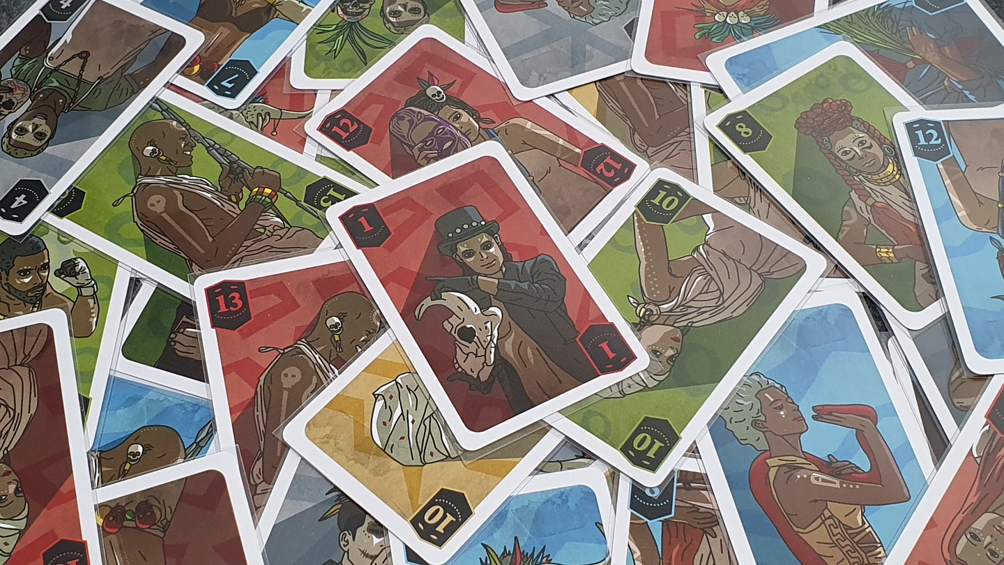 부두인형 카드는 가장 높은 카드를 이기는 카드 입니다. 플레이어 인원 수에 따라 가장 높은 카드가 다릅니다. 2~3인이 플레이할 경우 가장 높은 카드는 10 / 4인일 경우는 12 / 5인일 경우는 15가 가장 높은 카드 입니다. 가장 높은 카드가 나왔을 때 0 카드가 함께 있다면 0이 가장 높은 카드가 되어 트릭을 가져갈 수 있습니다. 단, 가장 높은 카드가 없다면 0은 제일 약한 카드로 사용됩니다.