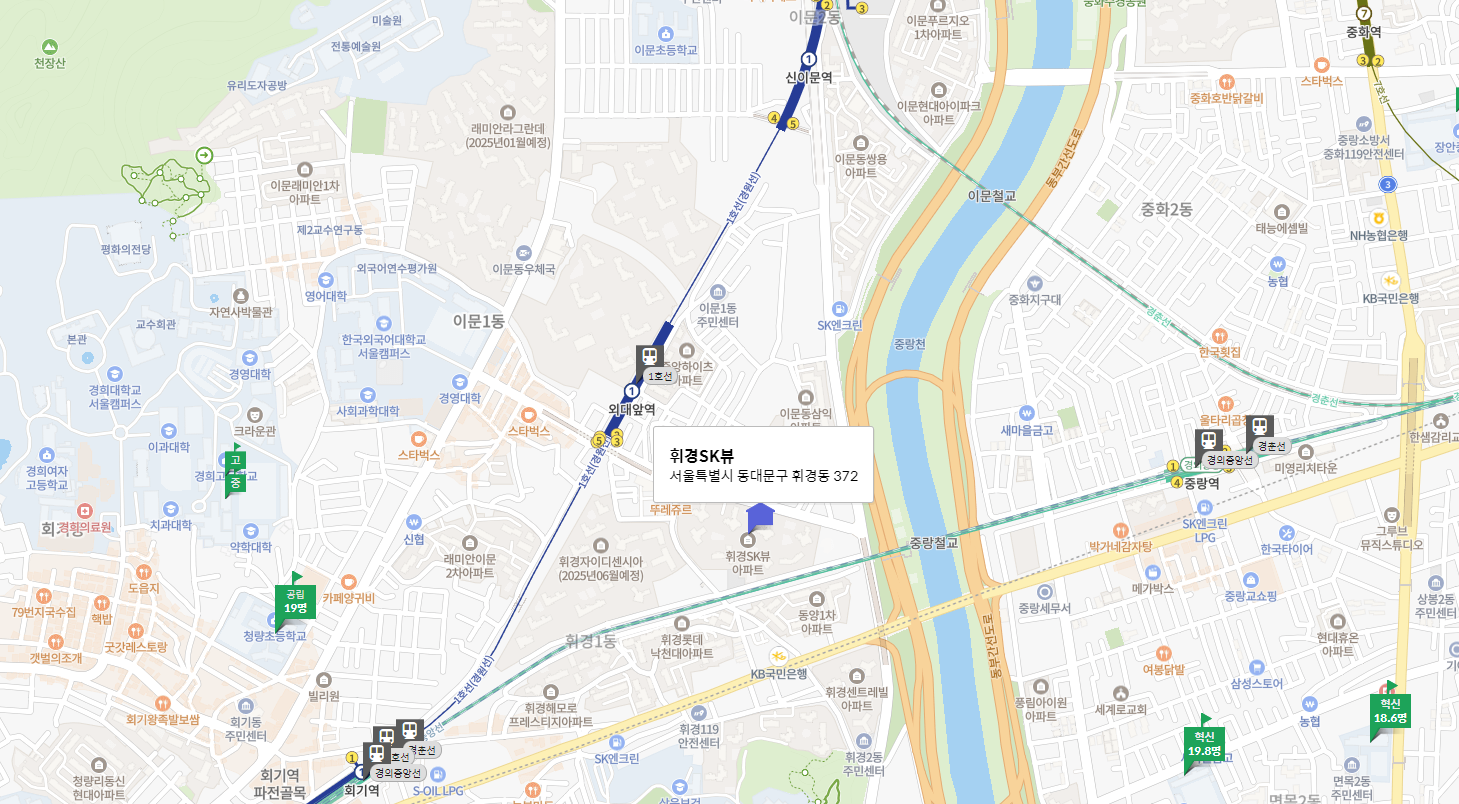 또한, 주변의 신축 단지인 레미안라그란데와 이문현대아이파크자이가 입주할 예정이라 인프라 개선 가능성이 높습니다. 휘경SK뷰는 을지로와 광화문 등 직장인들이 선호할 만한 입지로, 신혼부부들에게 적합한 주거지로 평가됩니다.